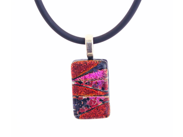 - Dichroic abstract landscape glass pendant on black rubber cord