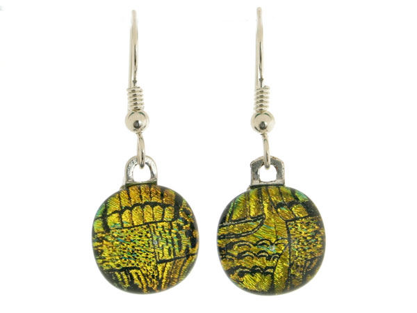 This pair of earrings have been individually made by hand. Several pieces of handmade glass are stacked and placed into a kiln and fused together at high temperatures as high as 815º C (1500º F). It is then allowed to cool slowly over a specified time, soaking at specified temperature ranges which are essential to the annealing process. This takes place normally for a period of 10-12 hours in 3 stages. The exact combinations of glass, temperature and placement within the kiln create a different result each time.