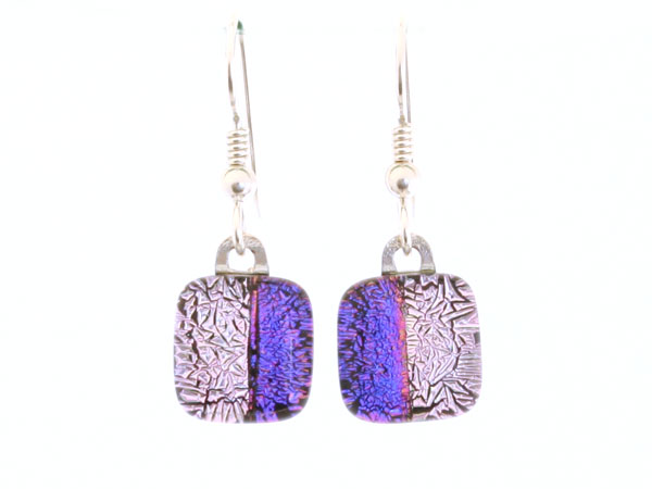 Fused Dichroic Glass Earrings pair on sterling silver hooks