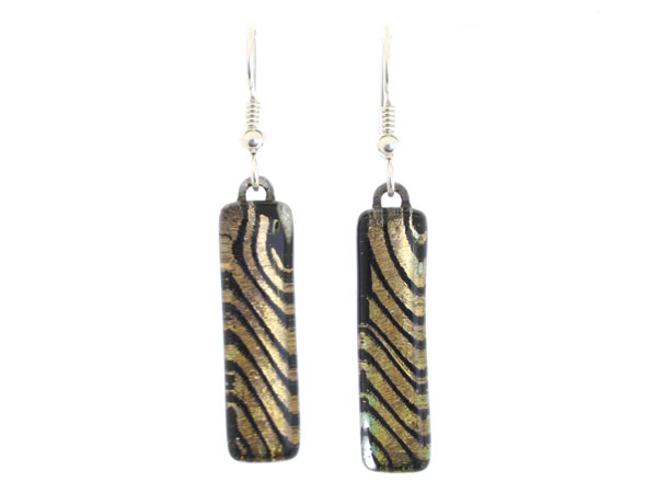 This pair of earrings have been individually made by hand. Several pieces of handmade glass are stacked and placed into a kiln and fused together at high temperatures as high as 815º C (1500º F). It is then allowed to cool slowly over a specified time, soaking at specified temperature ranges which are essential to the annealing process. This takes place normally for a period of 10-12 hours in 3 stages. The exact combinations of glass, temperature and placement within the kiln create a different result each time.