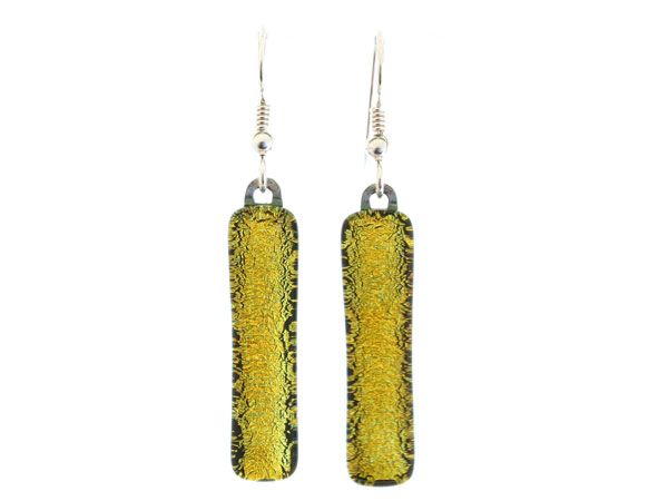 This pair of earrings have been individually made by hand. Several pieces of handmade glass are stacked and placed into a kiln and fused together at high temperatures as high as 815º C (1500º F). It is then allowed to cool slowly over a specified time, soaking at specified temperature ranges which are essential to the annealing process. This takes place normally for a period of 10-12 hours in 3 stages. The exact combinations of glass, temperature and placement within the kiln create a different result each time.
