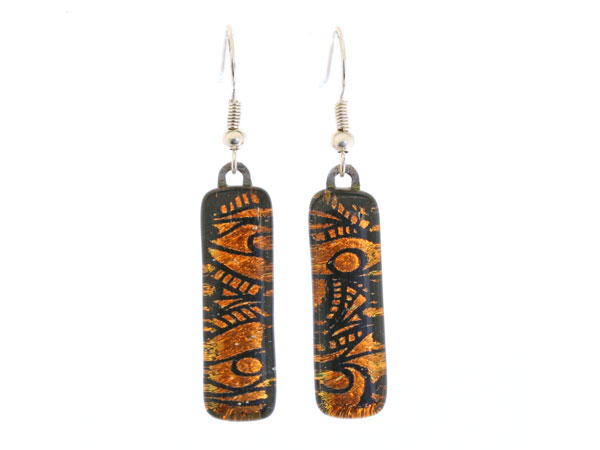 This pair of earrings have been individually made by hand. Several pieces of handmade glass are stacked and placed into a kiln and fused together at high temperatures as high as 815º C (1500º F). It is then allowed to cool slowly over a specified time, soaking at specified temperature ranges which are essential to the annealing process. This takes place normally for a period of 10-12 hours in 3 stages. The exact combinations of glass, temperature and placement within the kiln create a different result each time.