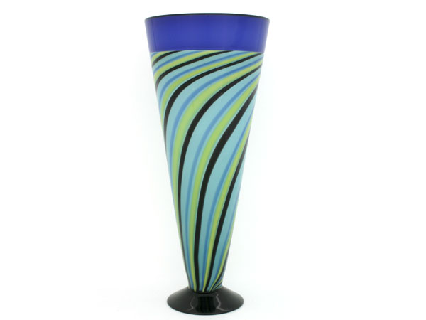 The intricate blowing technique to create these stunning Incalmo Flute Vases uses handmade coloured, glass canes fused into the molten, lead-free crystal glass from the glassblowing furnace. Ola Höglund is well known for his use of bold colour combinations. A technique that shows off these colour combinations in style, is the Incalmo Technique – it demands several blown bubbles of glass – one for the body, one for the base and one for the attached rim. At a particular time, when the bubbles have been worked to the desired size, the four bubbles are joined while still hot. Once cooled in the annealing kiln, you can feel where the four bubbles were joined together.