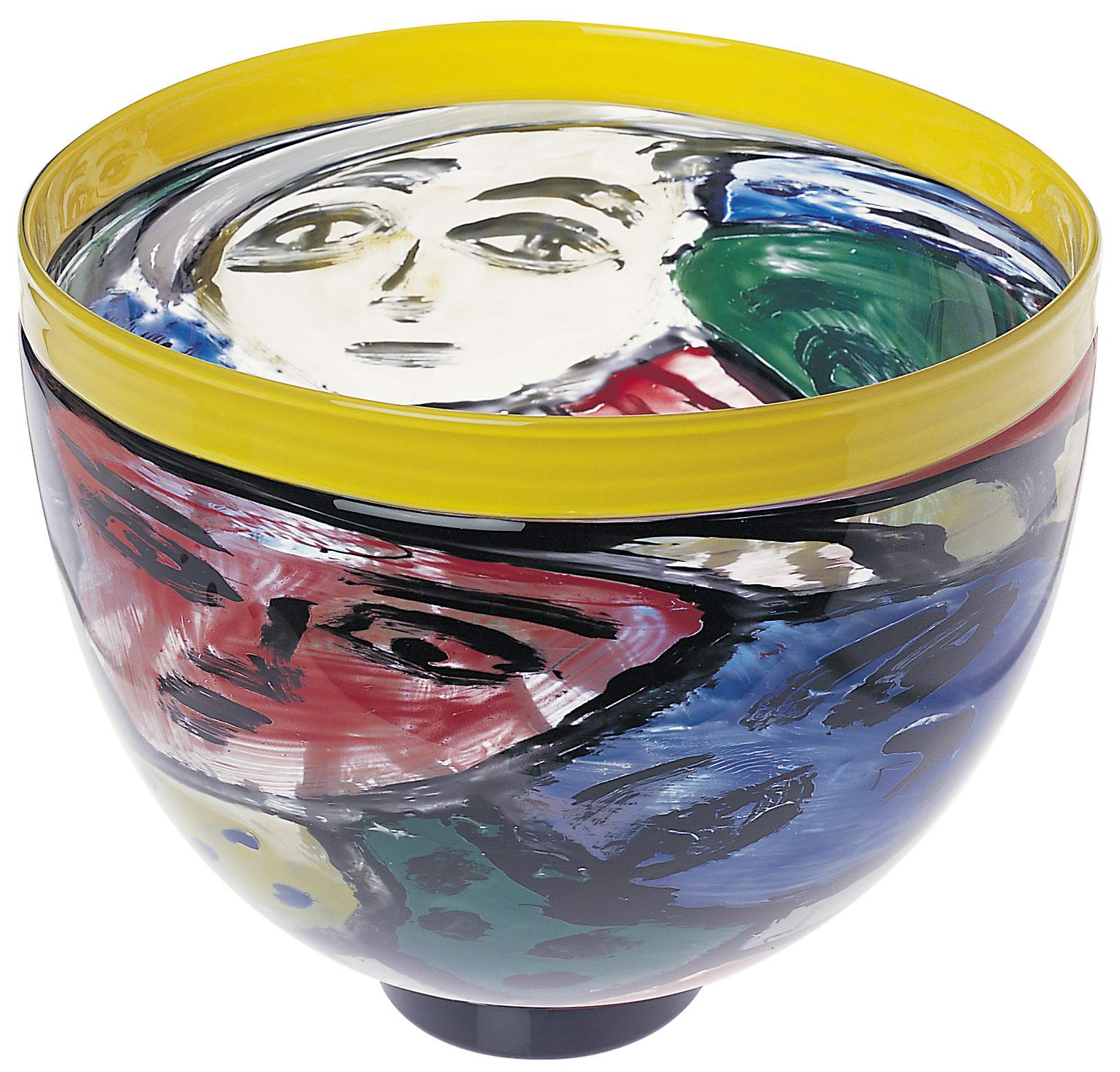 Marie paints the image with crushed, coloured glass on a small bubble – often as small as an egg. Ola reheats the bubble, and it is re-attached to the blowpipe, before being overlaid with several more layers of crystal clear glass. He then blows the vessel into its final and enlarged size, stretching and expanding Marie’s painted image as he blows. Great skill and artistic sensitivity are required throughout this operation. A complex Graal piece may take several weeks to create. The beauty of the Graal technique is reflected in the decoration, it becomes a three-dimensional, exquisite piece of artwork.