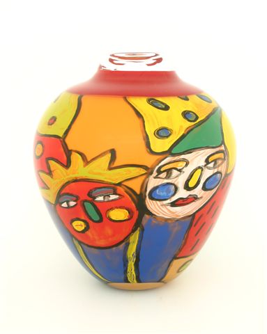 Marie paints the image with crushed, coloured glass on a small bubble – often as small as an egg. Ola reheats the bubble, and it is re-attached to the blowpipe, before being overlaid with several more layers of crystal clear glass. He then blows the vessel into its final and enlarged size, stretching and expanding Marie’s painted image as he blows. Great skill and artistic sensitivity are required throughout this operation. A complex Graal piece may take several weeks to create. The beauty of the Graal technique is reflected in the decoration, it becomes a three-dimensional, exquisite piece of artwork.