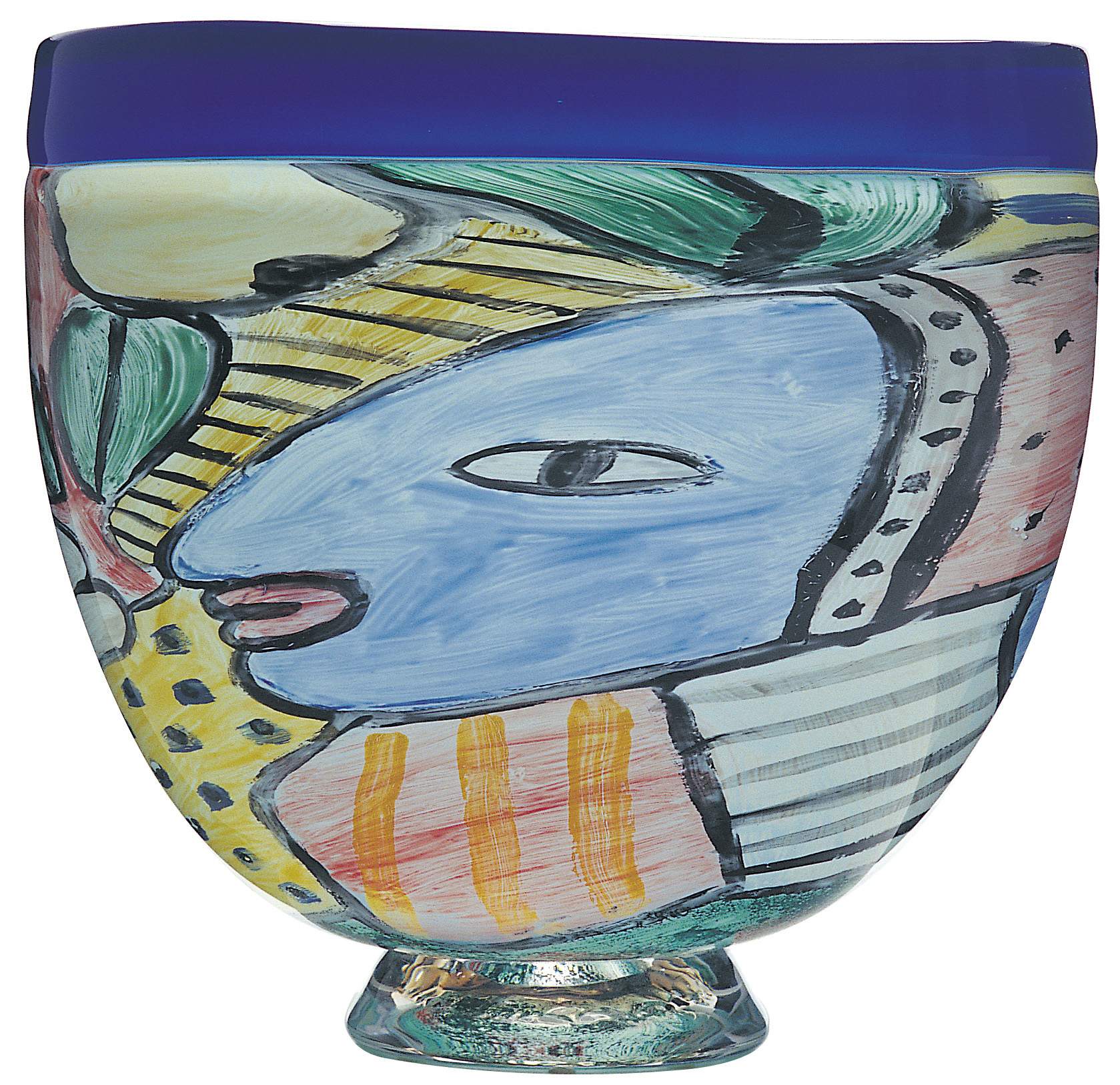 Marie paints the image with crushed, coloured glass on a small bubble – often as small as an egg. Ola reheats the bubble, and it is re-attached to the blowpipe, before being overlaid with several more layers of crystal clear glass. He then blows the vessel into its final and enlarged size, stretching and expanding Marie’s painted image as he blows. Great skill and artistic sensitivity are required throughout this operation. A complex Graal piece may take several weeks to create. The beauty of the Graal technique is reflected in the decoration, it becomes a three-dimensional, exquisite piece of artwork.