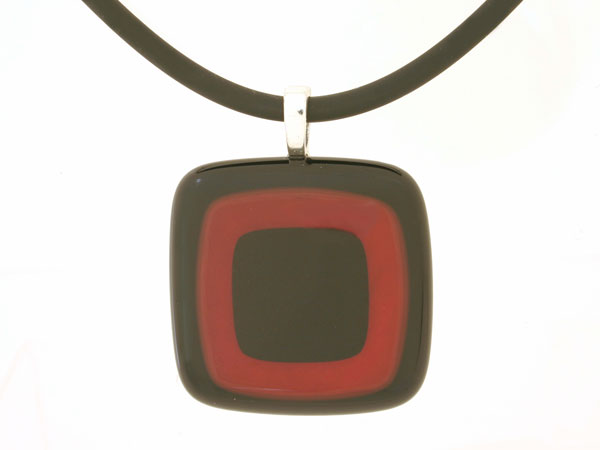 This pendant has been individually made by hand. Several pieces of handmade glass are stacked and placed into a kiln and fused together at high temperatures as high as 815º C (1500º F). It is then allowed to cool slowly over a specified time, soaking at specified temperature ranges which are essential to the annealing process. This takes place normally for a period of 10-12 hours in 3 stages. The exact combinations of glass, temperature and placement within the kiln create a different result each time. Tiny air bubbles may be trapped – frozen forever in the glass. Each piece is unique in its final form and finish; therefore, no two pieces will ever be duplicated. This is what gives the glass jewellery its individual personality.