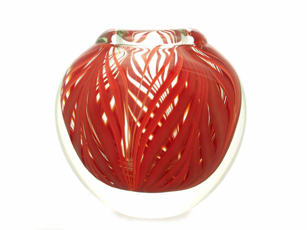 This unique vase is made in the intricate Sommerso technique where the individual coloured red layers are overlapping each other and framed with the clear crystal glass – a true collector’s item.