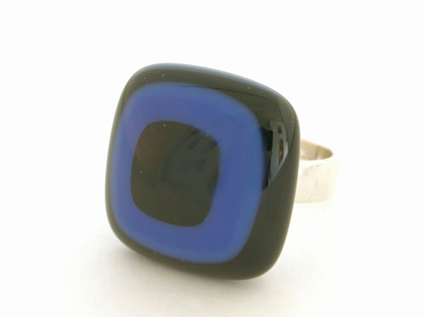 This ring has been individually made by hand. Several pieces of handmade glass are stacked and placed into a kiln and fused together at high temperatures as high as 815º C (1500º F). It is then allowed to cool slowly over a specified time, soaking at specified temperature ranges which are essential to the annealing process. This takes place normally for a period of 10-12 hours in 3 stages. The exact combinations of glass, temperature and placement within the kiln create a different result each time.