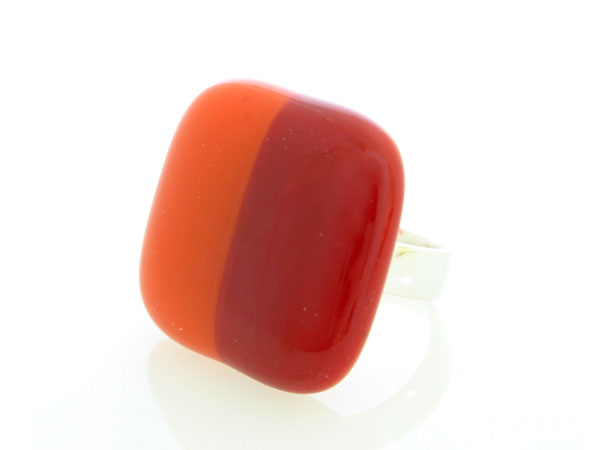 This ring has been individually made by hand. Several pieces of handmade glass are stacked and placed into a kiln and fused together at high temperatures as high as 815º C (1500º F). It is then allowed to cool slowly over a specified time, soaking at specified temperature ranges which are essential to the annealing process. This takes place normally for a period of 10-12 hours in 3 stages. The exact combinations of glass, temperature and placement within the kiln create a different result each time.